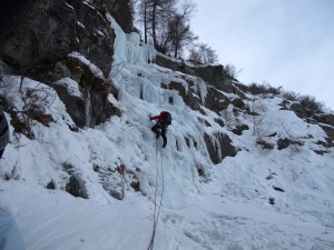 Well we put the miles in from Zeebrugge and arrived a day early with the drive getting more exciting as we came closer to Gites la Breche (-16 and the odd snow flurry!). Today we visited La Grave and climbed a route called La Nuit sera Fraiche – really nice route but … it was still somewhere between -10 and -16 all day. Rather chilly. MUST wear more clothes tomorrow :). The guidebook says a nice 3+ but today it seemed rather tough (or may be that was me!). to say we only did one route we are all feeling rather tired this evening. Best bit was the MEGA bumslide down!